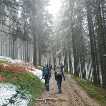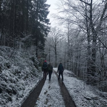 Et puis, course pour arriver avant la tombée du jour, qui arrive bien vite en plein hiver ;) Fatigués et le sourire aux lèvres, les aventuriers se réjouissent de la bonne douche à venir !