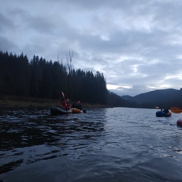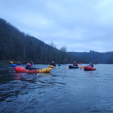 Un très chouette groupe d'amis qui se motivent pour une expéditions en packraft juste après le Nouvel An. Paysages enneigés et froid au rendez-vous.