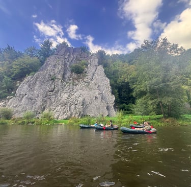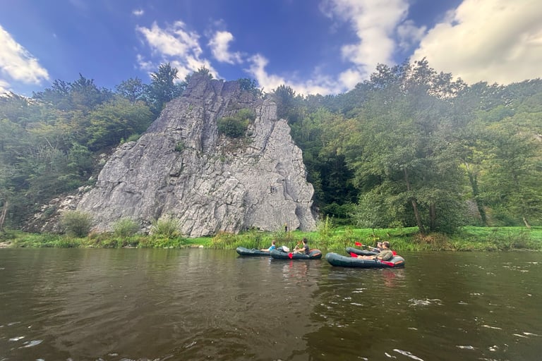 L’association de l’escalade et du packraft est à la fois naturelle et complémentaire. En Belgique, les massifs rocheux se trouvent souvent le long des rivières, ce qui en fait un terrain de jeu idéal pour combiner ces deux activités. Imaginez une journée où vous naviguez paisiblement en packraft avant d’aborder la paroi pour une séance d’escalade en falaise : une manière originale et immersive de découvrir la nature autrement. Cette expérience unique offre un parfait équilibre entre aventure, exploration et harmonie avec l’environnement.